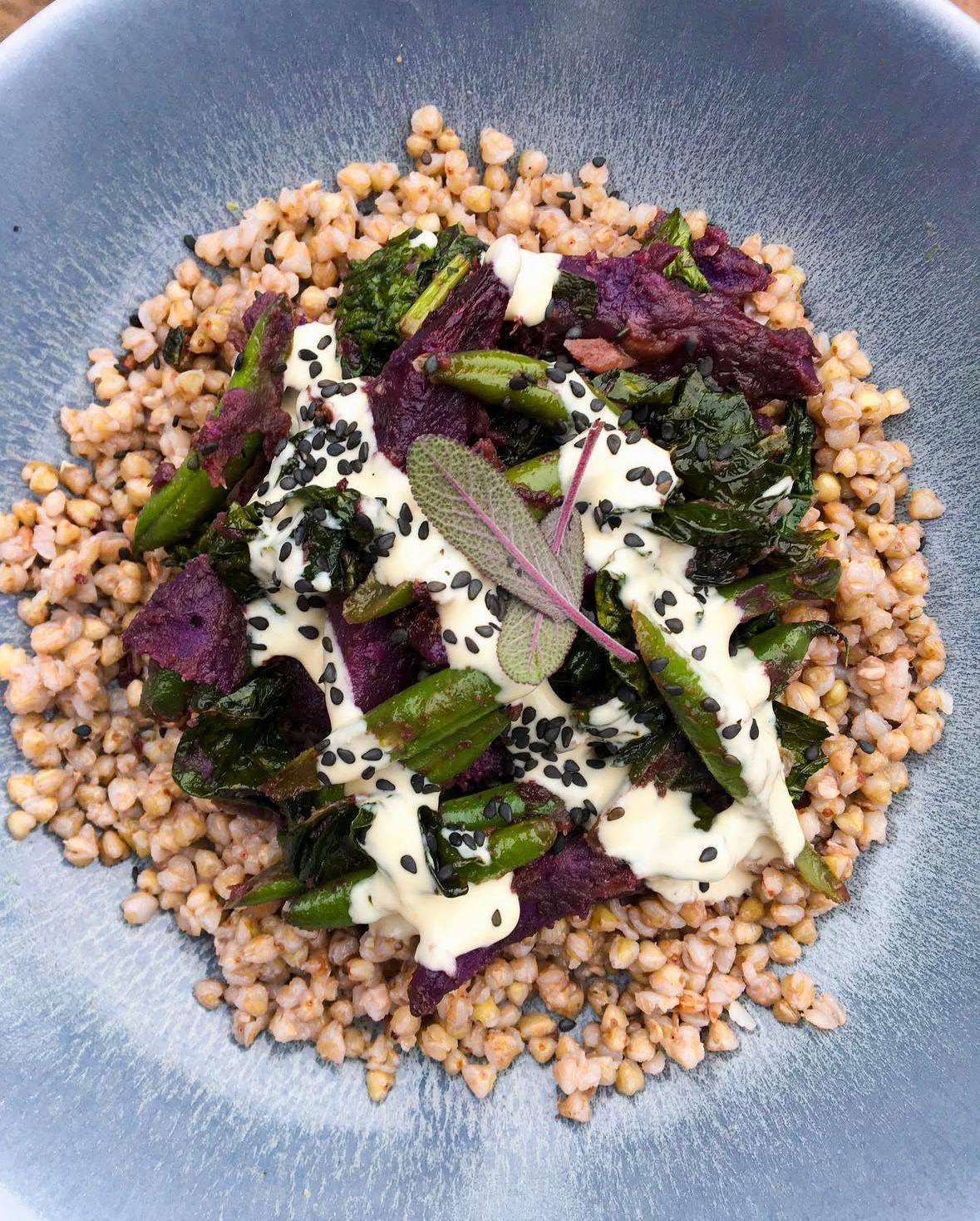 A quick and super nutritious lunch or supper. Purple sweet potatoes are a delicious super food and according to research, is a huge contributing factor to the remarkable longevity of the people of Okinawa, a Japanese island and part of the blue zones. The simplicity of this recipe allows the deep flavour of the potato to shine! Buckwheat is a complete protein and naturally gluten free….its actually a seed and not wheat at all, so healthy and delicious. This recipe makes enough for 2 portions, increase quantities as needed. If you wanted to add extra protein you could also add a tin of chickpeas.